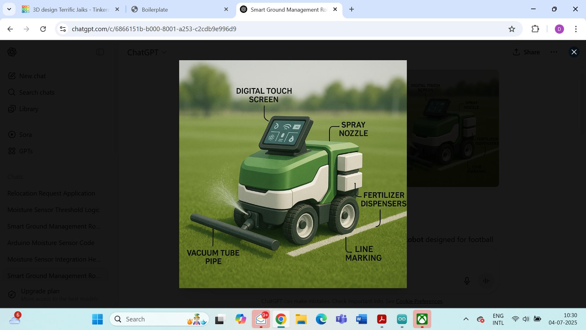 Technical Components | ### 1. Technical Components Needed #### Hardware Components: 1. **Soil Moisture Sensors**: To detect the moisture level of the ground to avoid over-watering. 2. **Weather Sensors**: To detect rainfall and adjust irrigation accordingly (to use collected rainwater). 3. **Motion Sensors/Cameras**: To detect if someone is playing on the ground (to stop all operations). 4. **Sprinkler System with Valves and Pumps**: For watering the ground with spray. 5. **Vacuum Tube System**: For dust particle removal (could be robotic cleaners with dust sensors). 6. **Fertilizer Dispenser**: Programmable to avoid continuous dispensing. 7. **Digital Touch Screen**: Mounted at the ground’s entrance or nearby, with relevant sensors for displaying information. 8. **Water Storage System**: For rainwater collection and irrigation. 9. **Microcontroller/PLC/Server**: Central unit to control all operations and sensors. 10. **Mobile App Backend**: To receive and send notifications/controls. 11. **Wi-Fi/Bluetooth Modules**: For connectivity with mobile app and other components. #### Software Components: 1. **Mobile App**: For remote control and notifications. 2. **Firmware**: For microcontrollers/sensors. 3. **Control Algorithms**: For sprinklers, dust cleaners, and dispensers to operate based on sensor input and not continuously. 4. **Cloud/Database**: To store sensor data and operational logs (optional for advanced analytics). ### 2. Recommended Tech Stack #### Hardware: - Microcontroller/PLC: Arduino/Raspberry Pi/ESP32 (for smaller setups), industrial PLC (for larger professional setups). - Sensors: Off-the-shelf soil, weather, and motion sensors compatible with the microcontroller/PLC. - Sprinkler/Pumps: Typical irrigation system components with electronic valves. - Vacuum/Dust Cleaning: Custom robotic vacuum-like system or adapted from existing dust-cleaning robots. - Fertilizer Dispenser: Custom or adapted from agricultural systems. - Digital Touch Screen: Commercial-grade display with touch input. #### Software: - Mobile App: Cross-platform (Flutter/React Native) or native (Android/iOS). - Backend: Node.js/Python/Java for server-side logic. - Database: SQLite (for local microcontroller storage) or Postgres/MySQL (for cloud storage). - Communication: MQTT/HTTP for device-to-server communication. - Cloud: AWS/Azure for hosting backend, if needed. ### 3. Detailed Implementation Steps (Ordered as Features Listed) 1. **Watering the Ground**: - Install soil moisture sensors strategically across the ground. - Connect sensors to the microcontroller. - Install sprinklers with controllable valves. - Write software to turn on sprinklers only when soil moisture is below a threshold (and when no one is playing). 2. **Vacuum Tube Dust Prevention**: - Install dust sensors to trigger vacuum system. - Implement a robotic vacuum system or fixed suction points connected to a central vacuum. - Start cleaning when dust levels are high (and no one is playing). 3. **Fertilizing the Ground**: - Install a fertilizer dispenser with controllable output. - Program it to dispense based on a schedule (e.g., once a week) and not continuously. 4. **Digital Touch Screen**: - Install a display with touch input. - Connect it to the microcontroller to display real-time ground status (soil moisture, dust levels, weather). 5. **Rainwater Collection**: - Set up a rainwater collection system with storage tanks. - Use pumps to feed water to the sprinklers, prioritizing rainwater over mains supply. 6. **Mobile App Control**: - Develop a mobile app with controls for manual override, alerts, and real-time ground status. 7. **Common Safety Logic**: - Integrate motion sensors/cameras to detect if someone is playing. - Ensure all systems disable actively when motion is detected. ### 4. Required Technical Learning 1. **Microcontroller Programming**: Learn Arduino/C++ or Python for Raspberry Pi. 2. **Sensor Integration**: Understand how to interface with various sensors and interpret their data. 3. **Irrigation System Design**: Learn about sprinklers, valves, and pumps. 4. **Robotics**: If building a custom vacuum system. 5. **Mobile App Development**: Learn Flutter/React Native or native SDKs. 6. **Backend Development**: Learn server-side programming and basic database management. 7. **Cloud APIs**: If cloud-based logging/control is desired. ### 5. Budget Calculation #### Hardware Costs: 1. Soil Moisture Sensors: $10 x 10 = $100 2. Weather Sensor: $50 x 1 = $50 3. Motion Sensors/Cameras: $30 x 4 = $120 4. Sprinkler System and Valves: $300 5. Vacuum System: $500 (estimate for custom solution) 6. Fertilizer Dispenser: $200 7. Digital Touch Screen: $150 8. Water Storage and Pumps: $400 9. Microcontroller/PLC: $100 (Arduino/RPi) 10. Wi-Fi/Bluetooth Modules: $50 **Total Hardware Costs**: ~$1,970 #### Software Costs: 1. Mobile App Development: $2,000 (initial development cost, no ongoing subscriptions assumed) 2. Backend Hosting: $0 (assuming local server) to $20/month (cloud) = $240/year 3. APIs: No 3rd-party APIs assumed here. **Total Software Costs**: ~$2,240 (first year) #### Maintenance Costs (First Year): 1. Routine Maintenance (cleaning, part replacements): $500 2. Software Updates: $300 **Total Maintenance Costs**: ~$800 #### Total Estimated Budget: **Hardware**: $1,970 **Software**: $2,240 **Maintenance**: $800 **Total**: ~$5,010 (Note: Hardware costs are highly variable depending on quality and scale. Professional systems could be significantly more expensive.) |